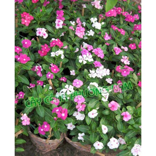 tím, hồng hoặc trắng. Cây dừa cạn chủ yếu được trồng thành từng cụm, trên ban công