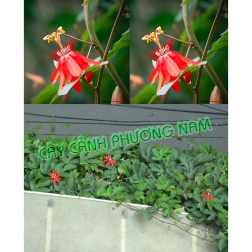nơi nào cây có thể bám vào bằng tua cuốn. Cây với hoa lớn màu đỏ sặc sở sẽ làm
